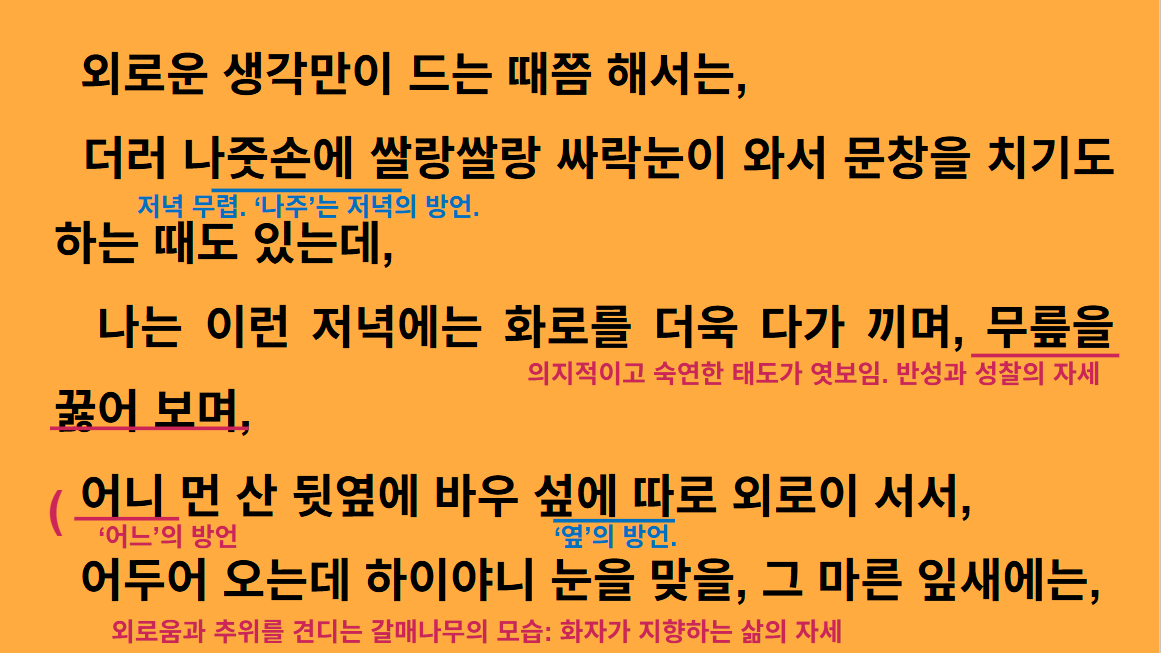외롭고 힘든 현실을 이겨낼 수 있는 용기를 배울 수 있는 작품으로, 한국인이 가장 사랑하는 백석의 작품을 내면화하면서 작품을 감상해 보세요.