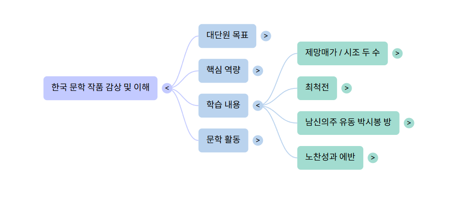 - 문화 향유 역량: 작품의 갈래, 작가와 독자, 사회와 문화, 문학사의 영향 등을 고려하여 작품을 수용하는 능력.