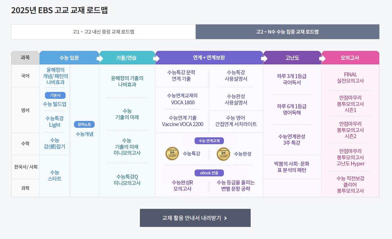 2025년 EBS 고교 교재 로드맵 안내 자료입니다.